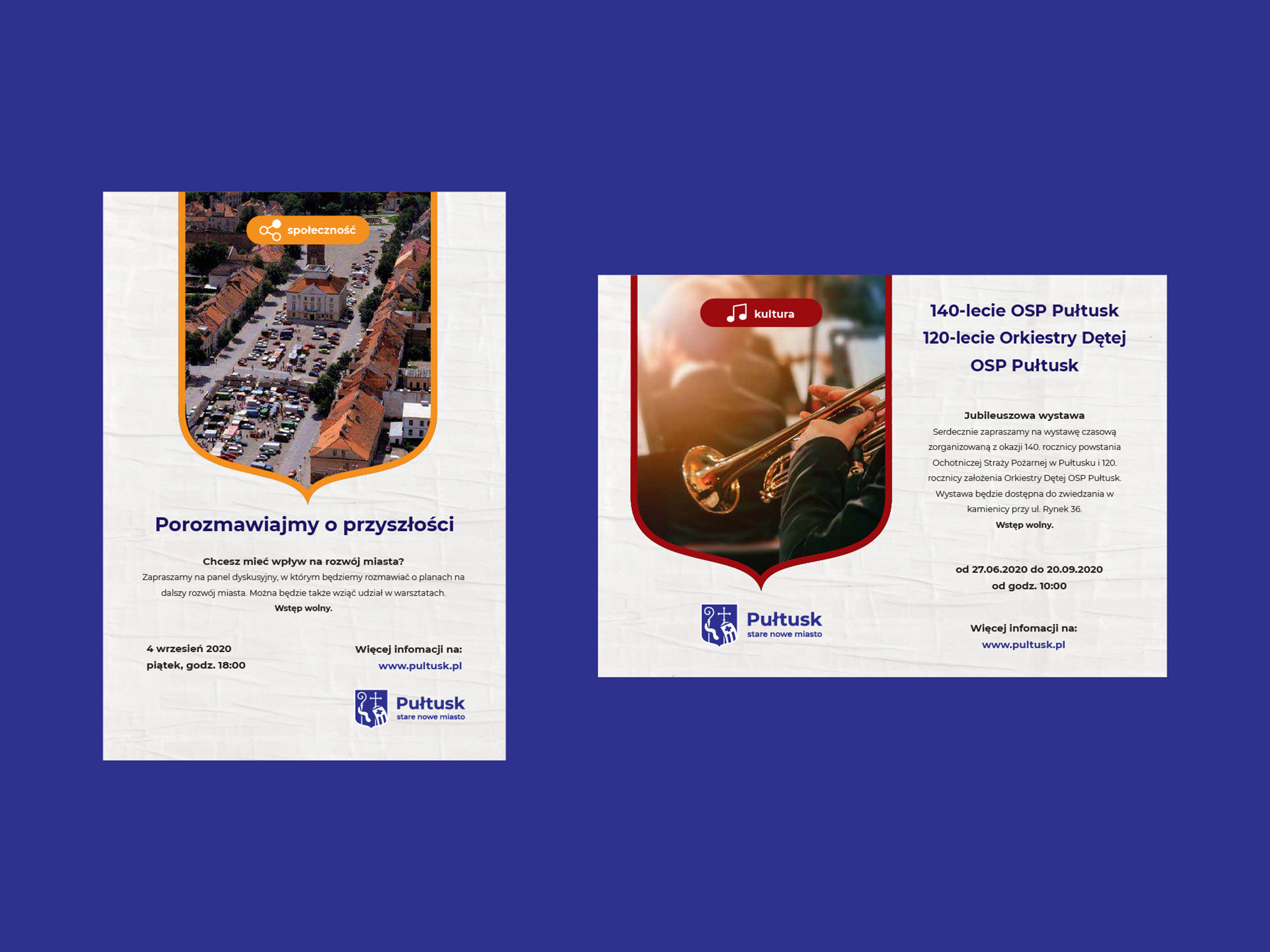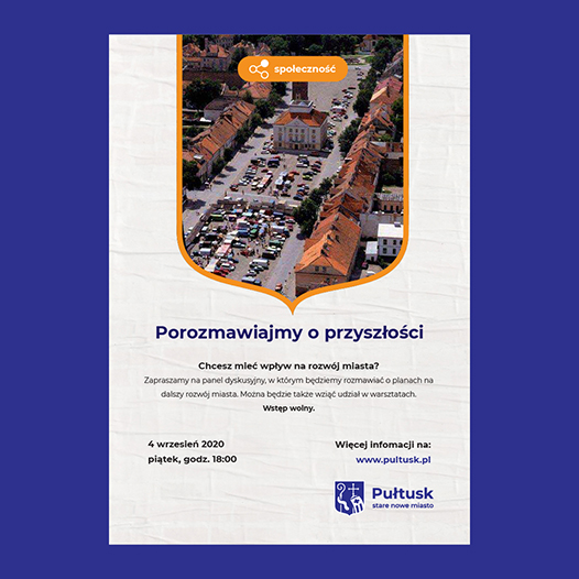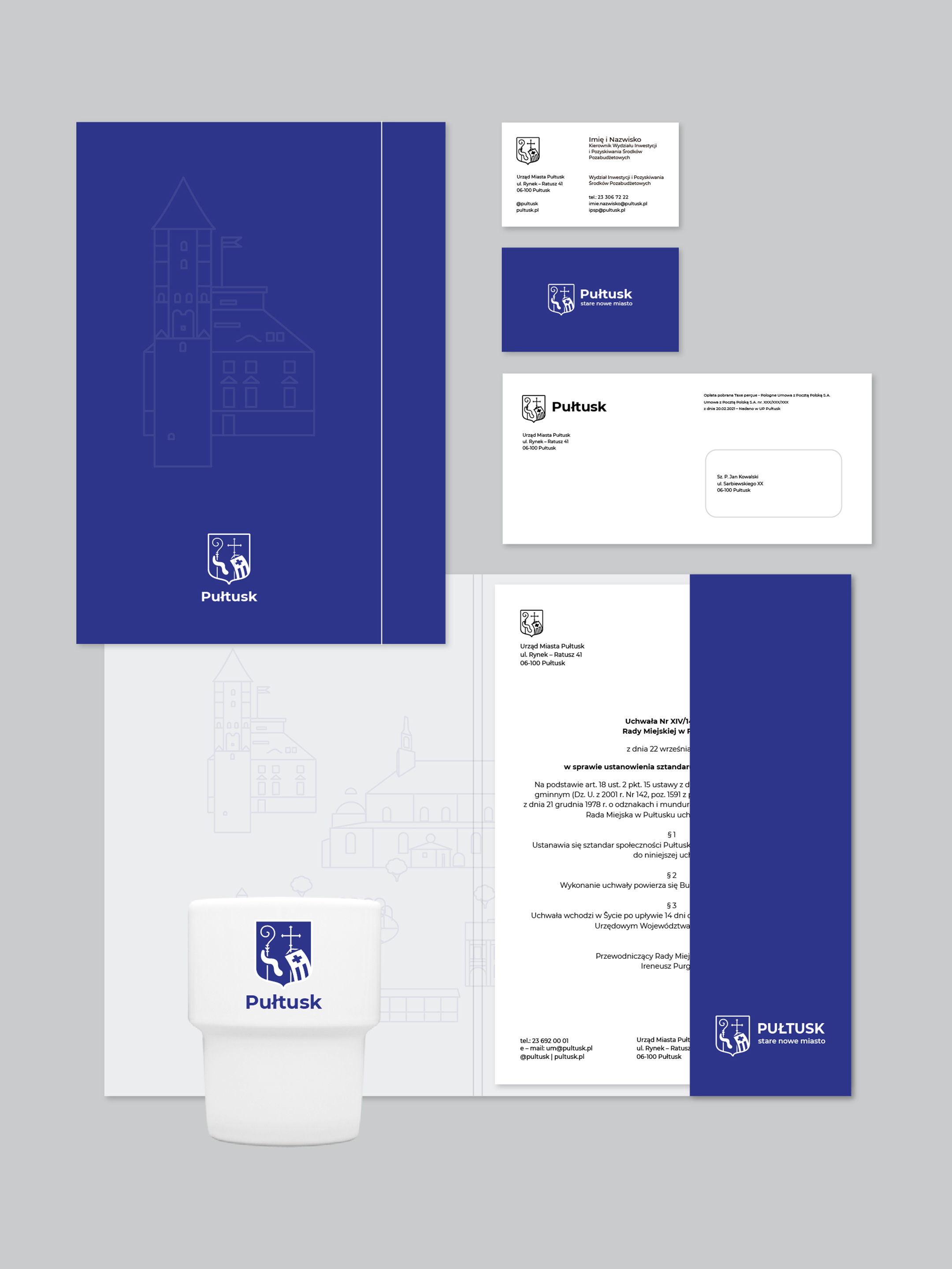 Nasza projektantka zgłębiła zagadnienie miast-marek jeszcze w czasie studiów na Uniwersytecie Artystycznym w Poznaniu. Identyfikacja wizualna miasta Pułtuska stała się tematem jej projektu, ponieważ jako pułtuszczanka darzy to miasto szczególnym sentymentem. Stworzony system identyfikacji nawiązuje do tradycji jego powstania i założenia. Znak graficzny w tej koncepcji zainspirowany jest herbem miasta. Pułtusk to dawna siedziba biskupów płockich, stąd krzyż oraz pastorał w herbie. Naturalnie przed powszechnym użyciem logo musiałoby przejść akceptację Komisji Heraldycznej.