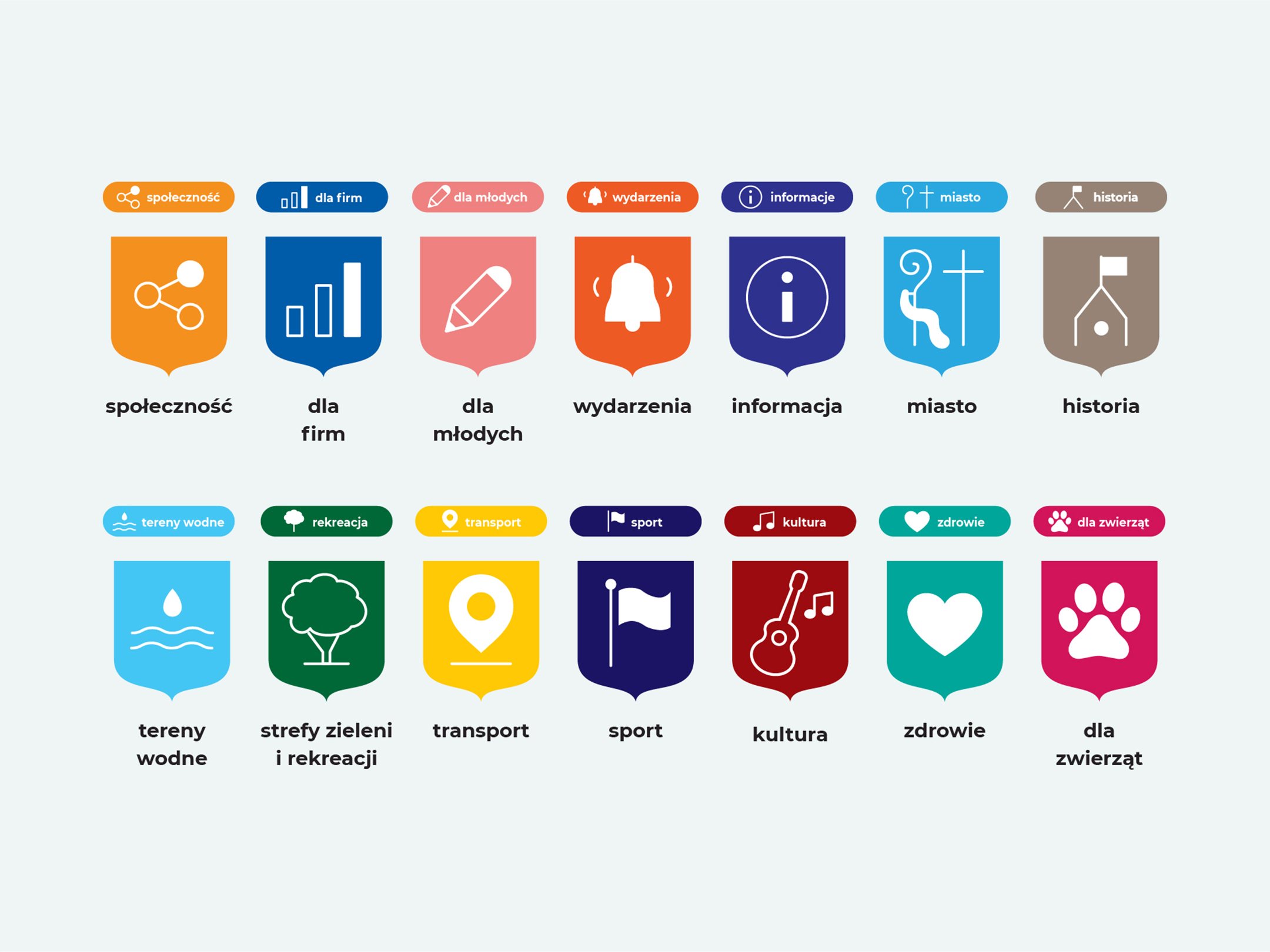 Linia wizualna jest minimalistyczna i w dosłowny sposób nawiązuje do kształtu herbu. W nim mógłby być zawarty materiał ilustracyjny wraz z oznaczeniem kategorii, które w połączeniu z ikonografią łatwo objaśnią cel informacyjny projektowanych materiałów graficznych. Identyfikację rozszerza również seria ilustracji o prostym rysunku linearnym, przedstawiającym zabytki warte zobaczenia lub miejsca infrastruktury czy kultury miejskiej. Branding miasta to nie tylko projektowanie. To przede wszystkim pogłębiona analiza jego możliwości, wyróżników i historii. Dopiero taka wiedza pozwala stworzyć identyfikację, która oddaje ducha miasta atrakcyjnego dla turystów, mieszkańców oraz inwestorów.